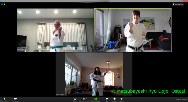 Nachdem wir seit gut einem Jahr für unsere Karateka unser virtuelles Dojo mit diversen E-Learning-Anwendungen am Laufen haben, kommt nun in Corona-Zeiten auch unser gemeinsames virtuelles Training dazu. Da viele nicht nur #HomeSchooling und #HomeOffice betreiben, entschieden wir uns – mit Schließung unserer Turnhalle – das Training nach Hause zu verlegen. Schnell war die Technik eingerichtet und schon das erste Training klappte super.